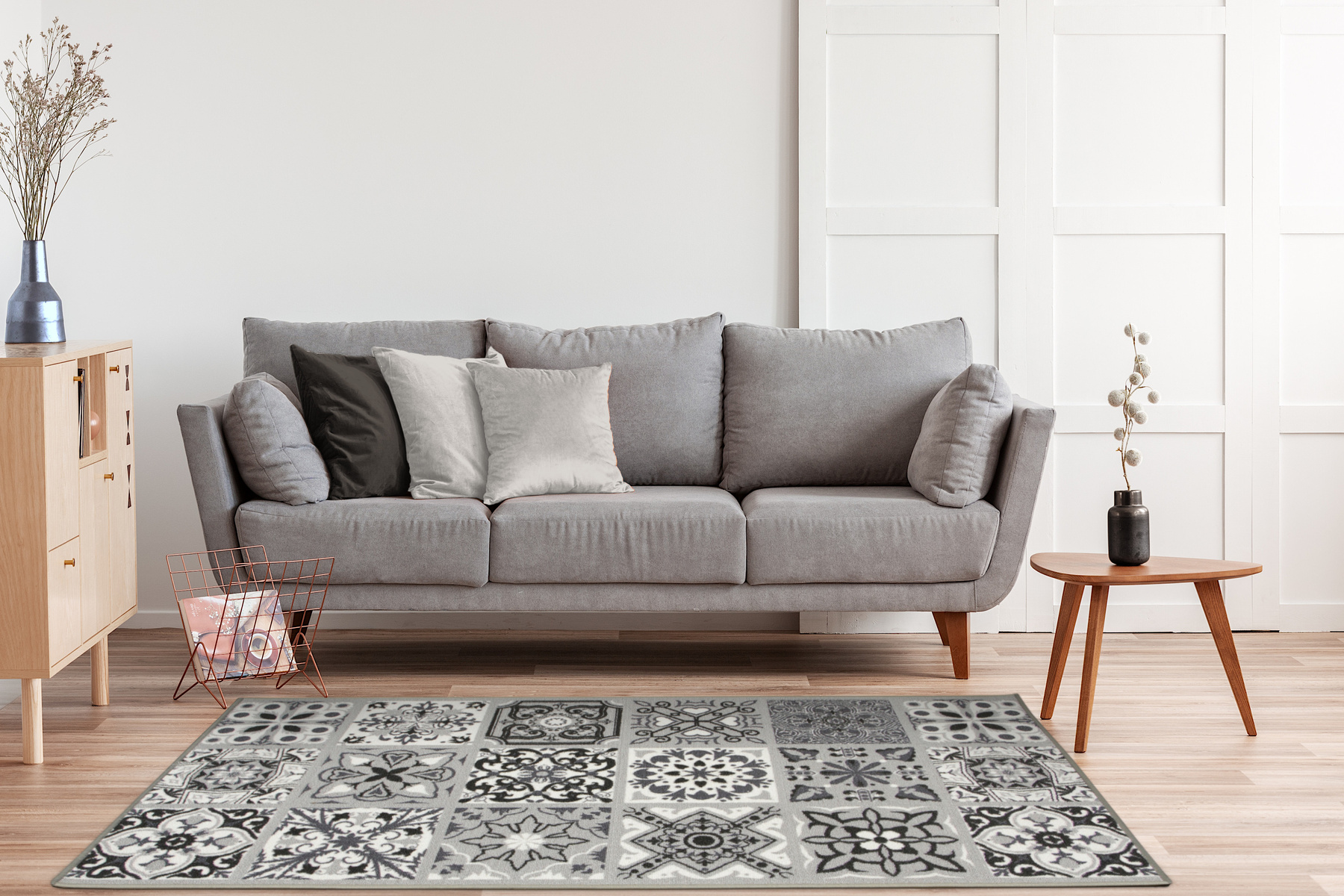 Opinie o Antypoślizgowy Chodnik Patchwork Szary szerokość 80 cm